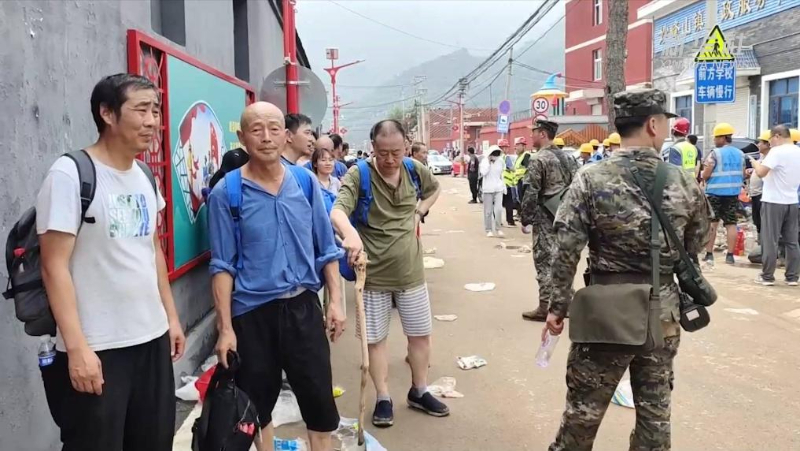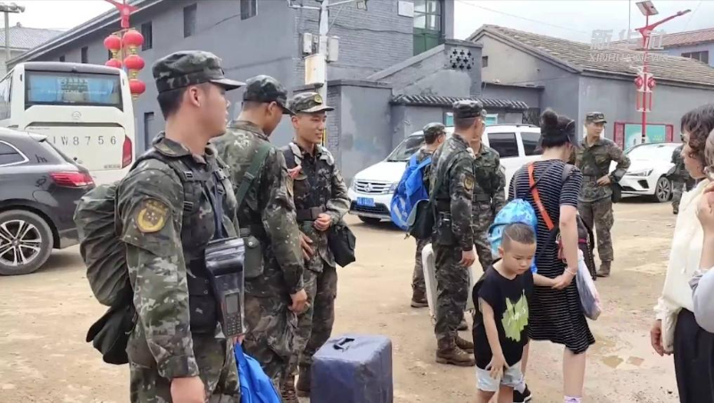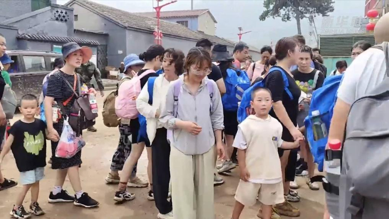 8月2日上午11时许,在北京武警总队机动三支队的战士护送下,K396次列车上的36名旅客徒步3小时,抵达北京市门头沟区妙峰山镇镇政府门口,之后乘坐大巴去往安全地点。