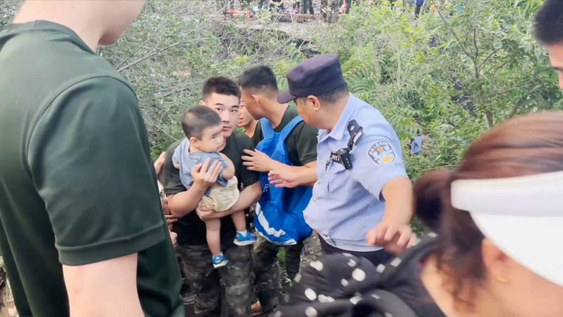 8月2日下午15时许,受困在北京门头沟安家庄村的Z180次列车180余名旅客,在武警部队和国铁集团的组织下,准备进行撤离。