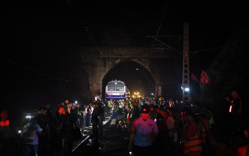 在3-4号隧道间有塌方造成的约20米高、30米长的悬空铁路,为了安全,在现场抢修铁路的工作人员不断提醒救援队伍要控制通过速度和人数。走在悬空铁路上,能明显感觉到铁路的抖动。