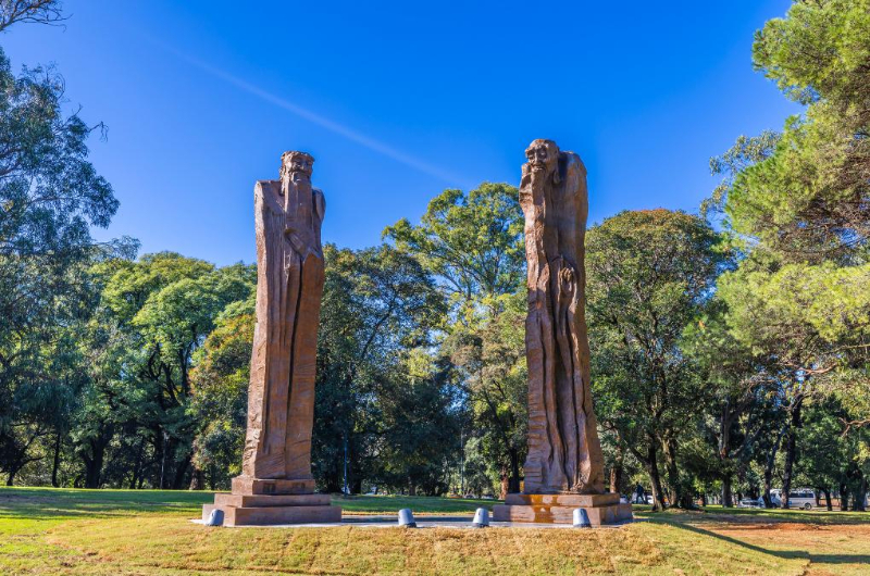 “南美明珠”乌拉圭首都蒙得维的亚市中心的巴特列公园近日迎来了两位“不用护照”的中国友人。他们,一个浑然高古,一个飘逸悠游,高7.8米、总重6.6吨,伫立于天地之间,以中正祥和的儒雅气度和天人合一的怡然神韵,讲述着万里之遥的中国故事。