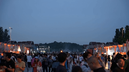 夜幕降临后的奥林匹克塔开启绚烂光影,让市民游客沉浸在灯光艺术与美食市集浪漫交织之中,一站式满足“味蕾+视觉”双重体验。
