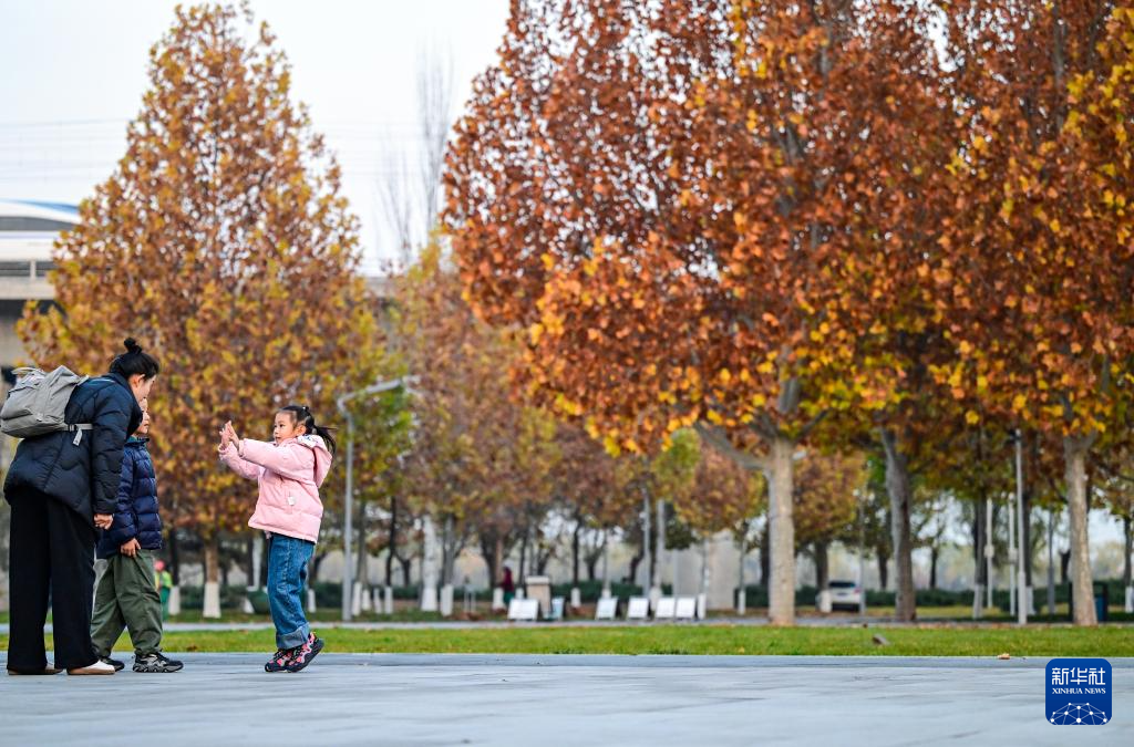 初冬时节,北京园博园内树木色彩斑斓,不少市民趁着周末来到这里,或散步赏景,或静坐小憩,享受一段惬意的休闲时光。