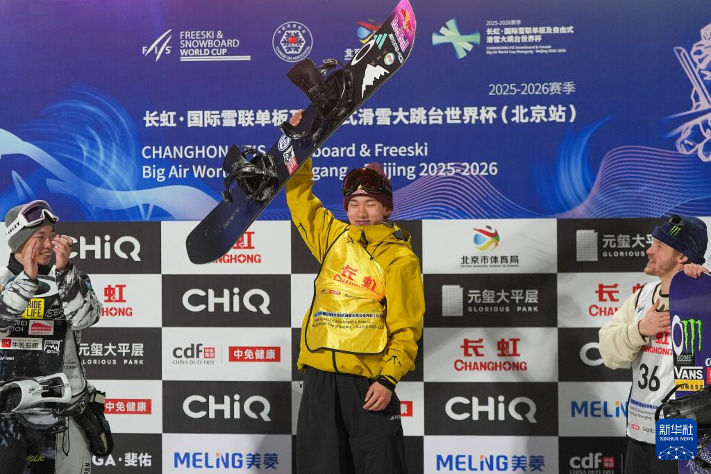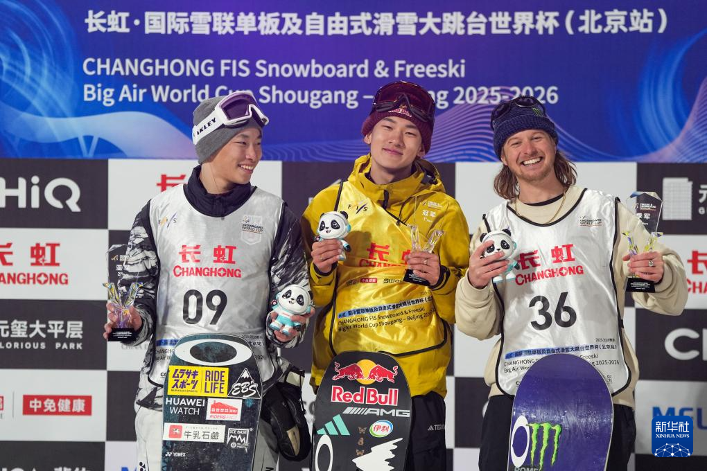当日,2025-2026赛季国际雪联单板及自由式滑雪大跳台世界杯北京站单板滑雪大跳台男子组决赛在首钢滑雪大跳台举行。