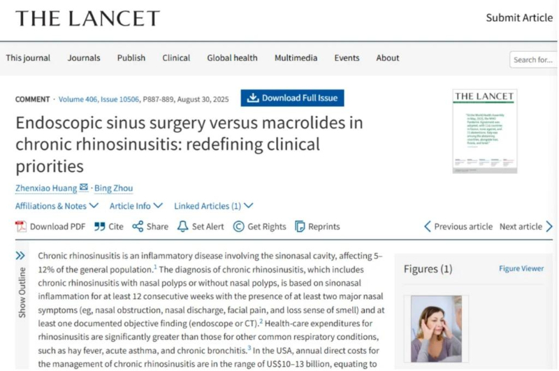 基于研究结果,评论明确指出,对于药物治疗效果不佳的慢性鼻窦炎患者,临床医生应有足够信心推荐鼻内镜鼻窦手术;同时,证据不支持将长期低剂量克拉霉素作为常规治疗选择。该评论文章发表在国际医学期刊《柳叶刀》上。