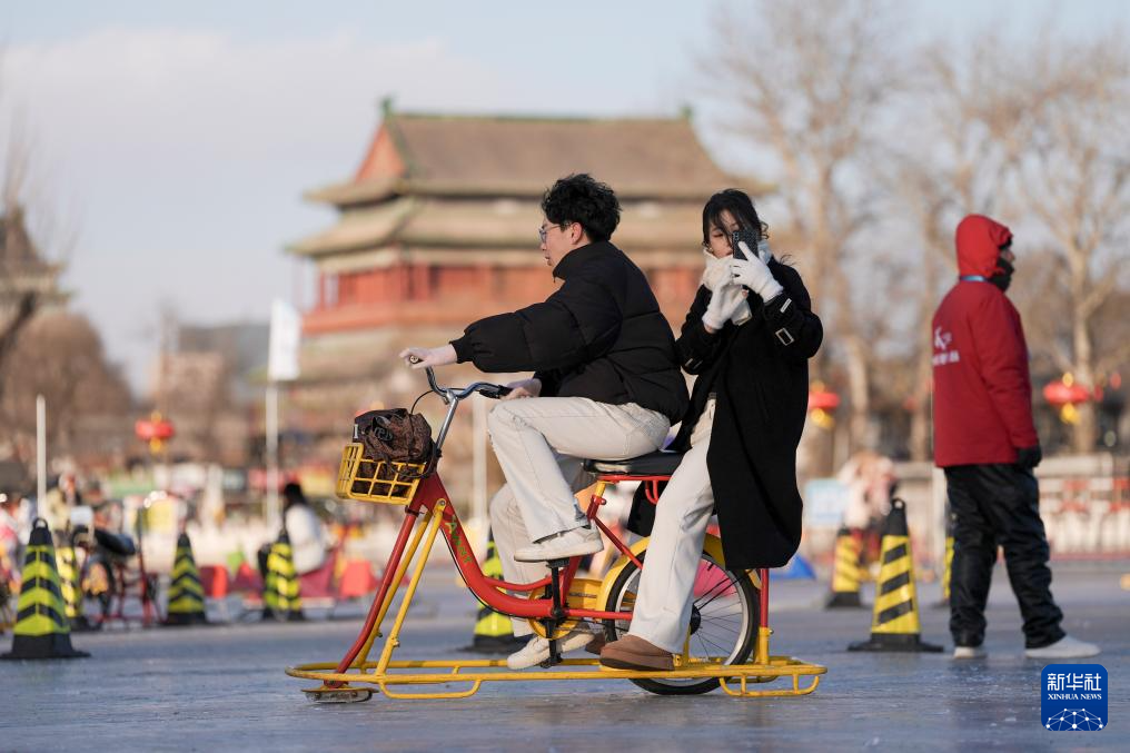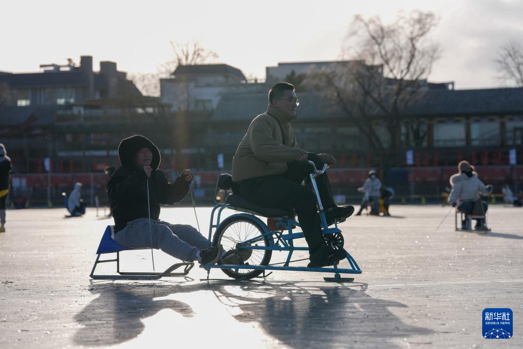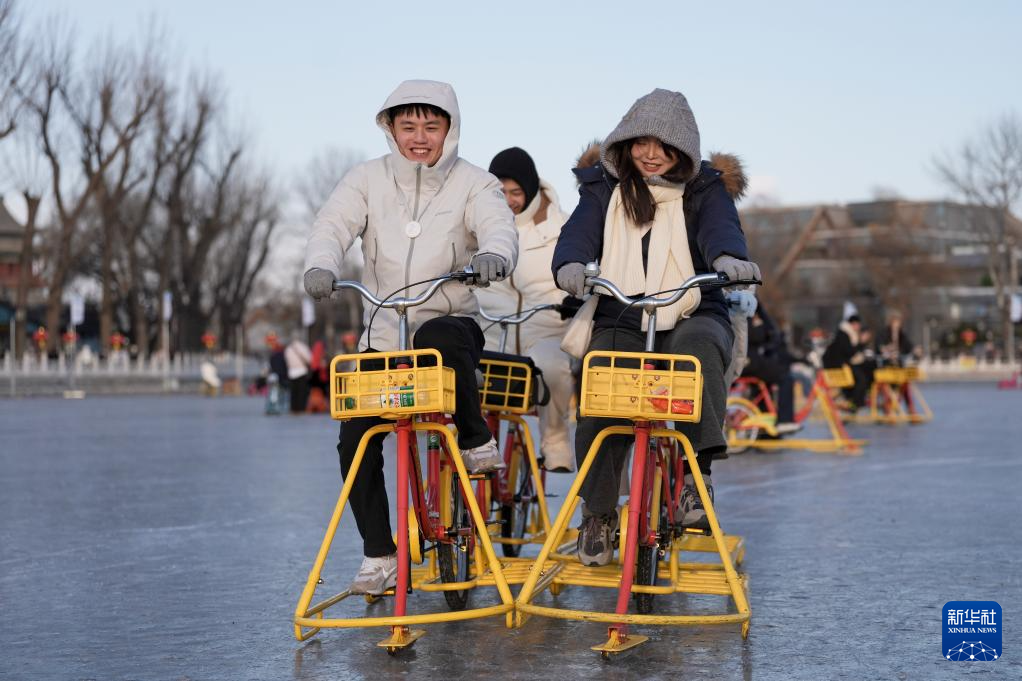 1月10日,游客在什刹海前海冰场上游玩。