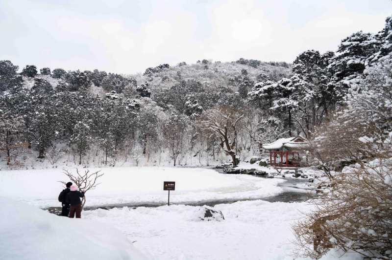 北京市公园管理中心提示,雪后游园需避开冰雪覆盖的树干房檐,做好保暖防护,拍摄及游玩时切勿攀爬树木山石,注意脚下安全。游客如需热水、小药箱等便民服务,可联系园内游客服务中心寻求帮助。