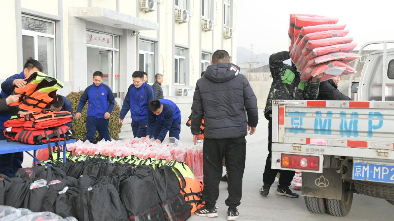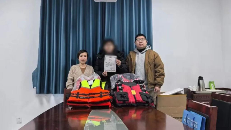被救援人员向山区村捐赠共计280件救生衣。新华社发