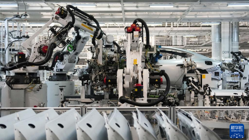 2025年6月16日,机器人在北京小米汽车工厂车间流水线上工作。新华社记者 郑焕松 摄