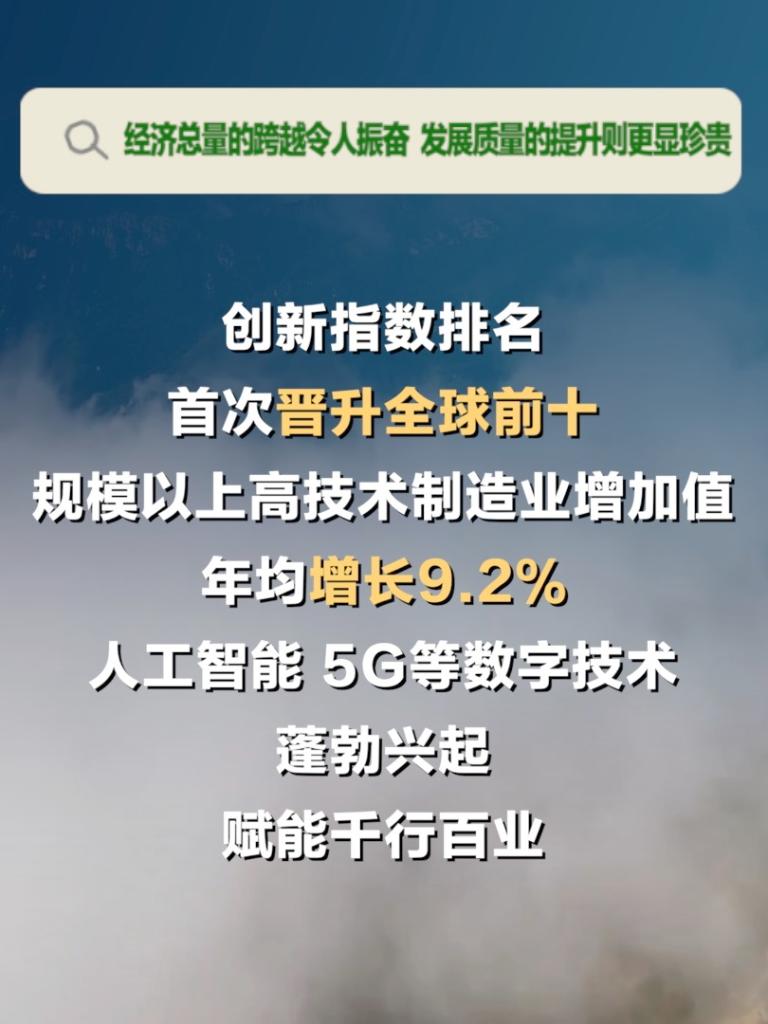 过去5年,我国新质生产力稳步成长,创新指数排名首次晋升全球前十,规模以上高技术制造业增加值年均增长9.2%,人工智能、5G等数字技术蓬勃兴起,赋能千行百业……