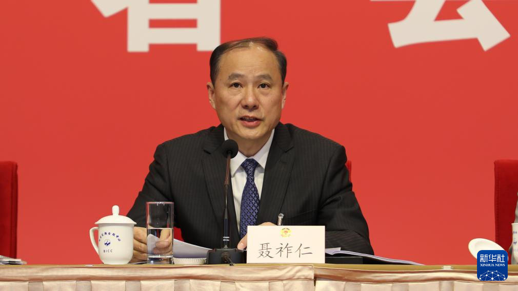 图为聂祚仁委员回答记者提问。新华网发(韩磊 摄)