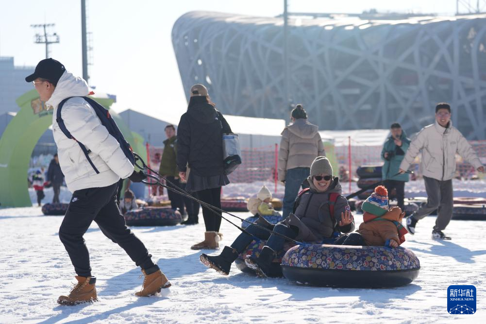 市民游客在第十五届“鸟巢”欢乐冰雪季游玩。新华社记者 谢晗 摄