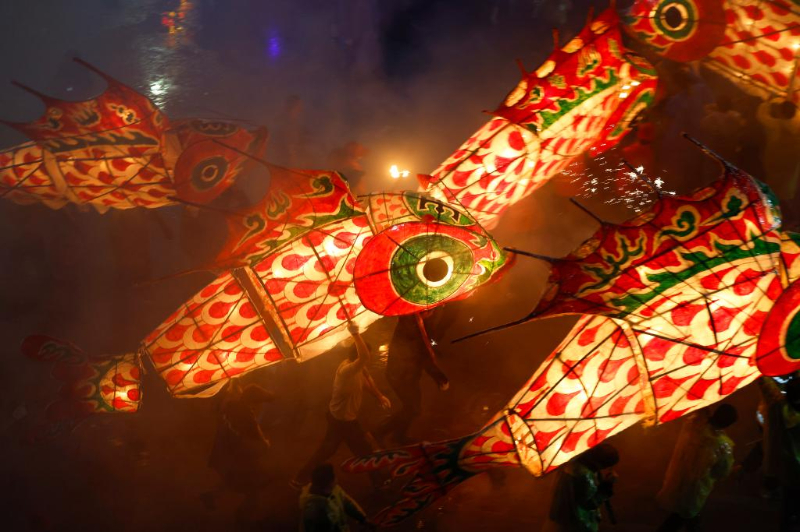 3月2日,龙灯队在重庆市秀山土家族苗族自治县西街巡游。元宵节到来之际,各地举办丰富多彩的活动,喜迎佳节。新华社发(胡程摄)
