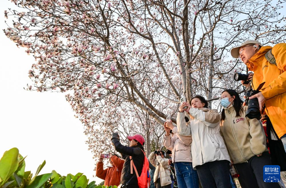 随着气温逐步回升,北京街头的玉兰花悄然盛开,为城市添上一抹靓丽的春色。